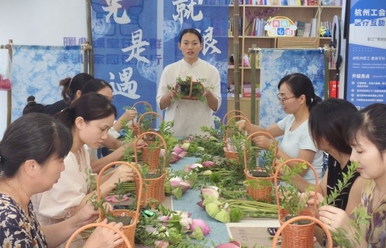 知行社区联合工会开展“花香满驿家,情暖户外劳动者”主题插花活动